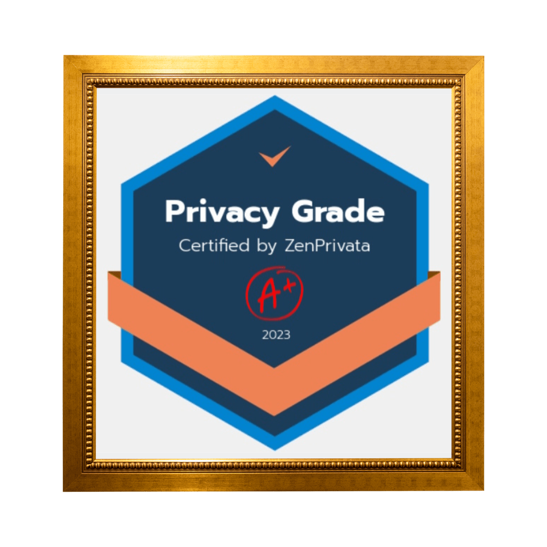 When your privacy program is up to a grade you are proud of, you then get a Trust Badge that you can place on your website and on your marketing materials, showing customers that you protect personal data and are a good company to do business with. ZenPrivata also provides verification of your privacy grade.
