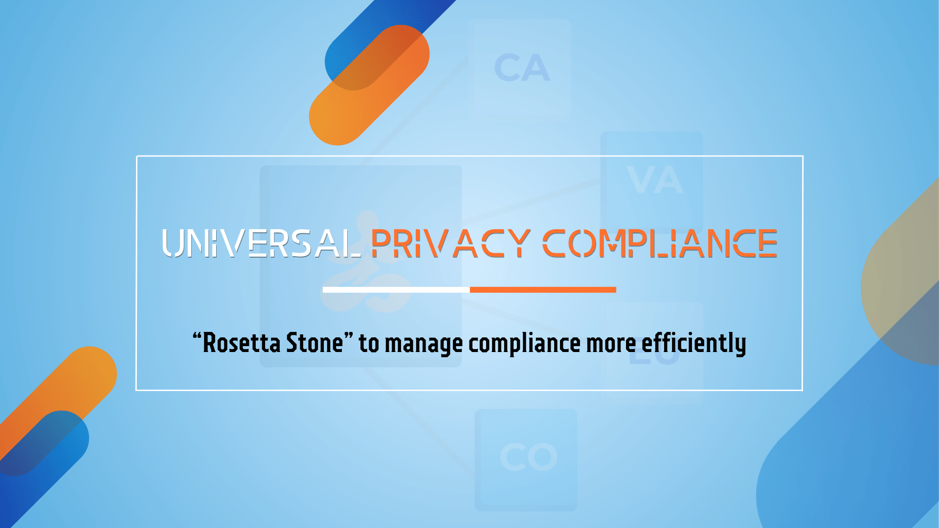The solution: Universal Privacy. Begin with Privacy Quickstart and answer a few simple questions about your privacy program. Universal Privacy then acts as a “rosetta stone” translator, using your Quickstart responses to complete a large portion of each jurisdiction’s regulations for you automatically, based on your Quickstart responses. No need to keep reinventing the wheel or re-enter the same response for many different states and countries.